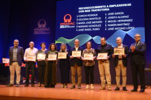 En primer lugar, se distinguió a los trabajadores con mayor antigüedad en la empresa: Conchi Rosique, Azucena Montelío, Mª José Meroño, Mariano González, José Ángel Rubio, José García, Josefa Alcaraz, Miguel Hernández, Ramón Martínez y José Antonio López.